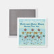 A pretty customisable Save the Date wedding magnet with various colour flowers on a blue background that you can easily add the bride and groom's names and wedding date to. It makes a great little gift to friends and family to remind them to save the date!
