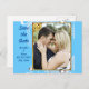 Blue Background with Diamonds and Gold Frame Bride and Groom to Be Save the Date Postcard. Convert this card for any occasion: anniversary, birthday, etc. Personalise this template with your photo and information.