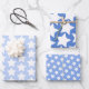 NewParkLane - Add a plash of colour to your wedding, baby shower, or kids birthday gift, with these whimsical wrapping paper sheets, with a fun pattern of big white stars against a bluebackground in 3 different shades.