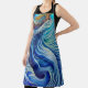 Blue with Gold Abstract Ocean Waves Artwork Apron