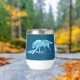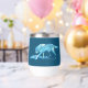 A stylised blue wolf (Canis lupus) casts a shadow as it passes through snowy terrain. Customise by adding your own text on the reverse side.