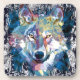 Blue Wolf Beverage Coaster | Colourful Wolf Drawin