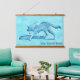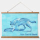 A stylised blue wolf (Canis lupus) casts a shadow as it passes through snowy terrain. Customise by adding your own text.