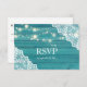 Blue Wood Lace & String Lights Wedding no Meal RSVP Card
