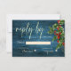 Blue Wood String Lights Christmas Wedding RSVP Card . Send out these Elegant pretty RSVP Cards along with the wedding invites to friends and family. The design has text written in classy font on beautiful rustic blue wood background with Christmas leaves and berries illustrations . Customise it by changing the Date and other details . For any further customisation , feel free to contact me at mypaperlove2021@gmail.com