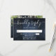 A string lights rustic blue barn wood with greenery boho RSVP card with your details set in modern typography. Designed by Thisisnotme©