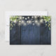 Blue Wood String Lights Greenery Boho Wedding RSVP Card