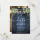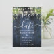 This elegant string lights blue rustic barn wood with greenery boho wedding save-the-date card can be personalised with your information in chic typography and a special photo on the reverse. Designed by Thisisnotme©