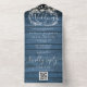 Blue Wood String Lights QR Code Floral Wedding All In One Invitation