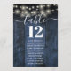 These blue rustic barn wood string lights table number seating charts are perfect for all celebrations. Designed by Thisisnotme©