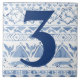 Blue Woodland Animal Ikat House Address Number 3 Ceramic Tile