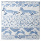 This version #3 is a rearranged enlargement of my design. My unique design in refreshing blue and crisp white features an interpretation of traditional geometric Ikat fabric weavings. I've added woodland animals to the pattern - foxes, bunny rabbits, birds and more. Use this piece as a decorative home accent or trivet. Great for blue and white decor and for anyone who loves animals. Whimsical original watercolor artwork & design by Tuzi Williams.