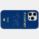 Blue and yellow passport phone case with world map. Personalise it with your name. Great for a pilot, a vacation or a frequent traveller.