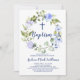 Affordable custom printed baby Boy Baptism invitations. This pretty design has a watercolor floral wreath with pastel blue flowers and greenery. Personalise the design with your child's Baptism party details. Reverse side has a blue colour or you can use the space to add additional text and photos. Click Customise It to choose any background colour and edit the text fonts and colours to create unique one of a kind Baptism invitation for your baby boy.