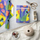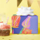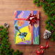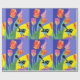 Blue Wren Tulips art on Navy, Purple and Yellow with flowers Watercolor Wrapping Paper. Designed by me from one of my original watercolor paintings. A stylish gift sure to put a smile on anyone's face.
