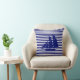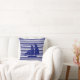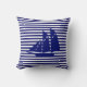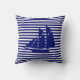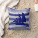 Elegant modern blue yacht on blue white striped Throw Pillow.