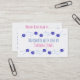This lovely business card is for anyone who has a knitting business, or who takes commissions for knitting work. It's decorated with colourful balls of blue yarn and knitting needles, and can be personalised with your name and business details. The text is in blue and pink, on a classic white background.