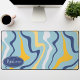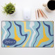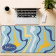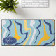 Blue, Yellow, and Navy Retro Groovy Waves Desk Mat