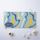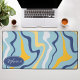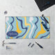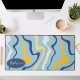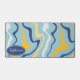 Brighten your workspace with this high-quality design featuring a modern take on vintage aesthetics. The pattern showcases bold, organic waves in a vibrant palette of sky blue, sunshine yellow, and deep navy blue on a crisp white background. A navy blue oval badge provides a professional space for a custom name in elegant white script, creating a unique and stylish focal point. The surface offers a smooth finish that perfectly captures the movement and energy of groovy 70s-inspired art. Ideal for those who appreciate rhythmic, abstract patterns and a bold, cheerful colour story, this design brings a fresh and creative energy to your daily routine.