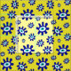 Modern version of the symbolic Evil Eye. The blue and white eyes are patterned over a yellow background.