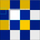 Blue, yellow and white chequerboard pattern fabric