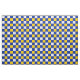 Fabric with seamless blue, yellow and white chequered pattern in colours of flag of Bosnia