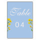 Blue & Yellow buttercup Wedding table numbers