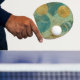 Blue and yellow circles populate this amazing work by Megan Meagher. A key lime green serves as the background for the colourful circles. Get a copy of this great print today!