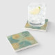 The coasters are gorgeous, a quality feel and heavy weight. They look like a precious archeological find. A rustic stone juxtaposed with a modern floral black and white print. I like the way the print goes slightly imperfect on the cut stone edges giving them a kind-of natural beauty.