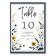 This Blue Yellow Floral Wedding Table Number features beautiful wildflowers in blue and yellow, with optional guest names on the back. The formal design and wording add a touch of elegance to your wedding celebration.