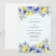 A vibrant watercolor design bursts with striking blue blossoms and cheerful yellow buds, accented by delicate green foliage. This cheerful composition evokes a light and airy spring atmosphere, perfect for a joyous occasion.
