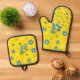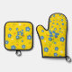 Blue Yellow Flowers Oven Mitt & Pot Holder Set