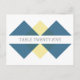 Modern and chic Geometric Triad Wedding Table Number Postcard featuring a stylish triangle design in dark blue and yellow. Easy to customise, this simple yet elegant design can be personalised by adding the appropriate table number(s) in the text field provided. Click "Customise It" to find more personalisation options.
