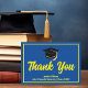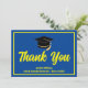 This modern royal blue and yellow custom graduation thank you card features classy handwritten thanks above your high school or college name for the class of 2026. Customise with your name under the black grad cap for great personalised graduate thank you cards.