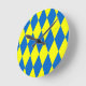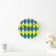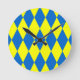 Blue Yellow Harlequin Checkered Design Round Clock