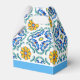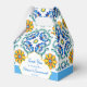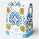 Blue yellow Majolica tiles Mediterranean custom personalised name favour gift boxes for a wedding, a party, bridal shower or baby shower. Bridght vibrant colours a nice accent for your special function.