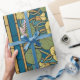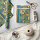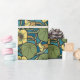 Blue Yellow Nasturtium Flower Nouveau Pattern Wrapping Paper