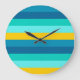 Blue Yellow Ocean Lemon Stripes Large Clock