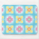 Blue yellow pink 60s 70s floral checkered pattern mouse pad