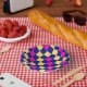 Blue Yellow Pink Checkered Pattern Design Paper Plate