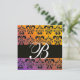 BLUE YELLOW PURPLE BLACK DAMASK MONOGRAM , white Invitation