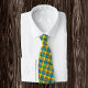 Neck Tie: Rustic fashion business tie featuring yellow and blue plaid pattern laced with red, black colours. Tartan inspired by Ukraine colours.