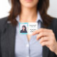 Let others instantly recognise your employees or staff at your facility with this blue and yellow geometric employee photo ID badge. Include information such as the name of the facility, the employee's name, title, and ID number, contact information, logo, etc. Also available in vertical configuration.