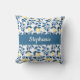 Blue Yellow Watercolor Lemon Monogram Name Cushion