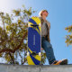 Blue and yellow wavy lines with blue centre and calligraphy Skateboard.