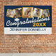 Personalised graduate school colours party banner featuring a blue background that can be changed to any colour, 5 photos of the student, a graduation cap, and a congratulations template that is easy to personalise.