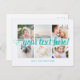 Script with Heart Your custom text 6 photos collage turquoise blue universal Postcard. Personalised 6 family collage photos Universal Greetings Postcards featuring a stylish photo collage with 6 customised images, your greetings message in elegant handwritten script font, your name, date, year, message on the back in a modern and simple sans serif font.