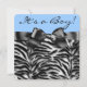 Adorable elegant blue zebra baby boy shower invitation. Add your details to the front and back by simply adding your event details, font style, font size & colour, and wording. Please note - all of the invitation designs you will find on Zazzle are printed graphics on flat paper stock with no actual jewels, bows, raised, embossed, or added parts or pieces.