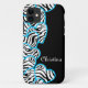 Girly, blue, black and white pattern with animal print hearts. Customise it with your own text !