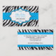 Zebra print makes a striking background for an ornate frame on a polka dot bright blue ribbon on this attention-getting business card. A business name and a main contact is showcased in the frame surrounded by curly ornaments. The reverse reveals all the contact information between two zebra print panels accented with blue polka-dotted ribbons. Available in alternate colours with matching products.